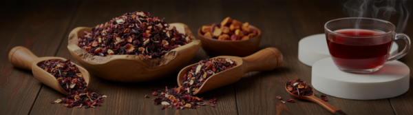 - La fleur d'hibiscus et l'écorce de cynorrhodon apportent une base acidulée et énergisante.